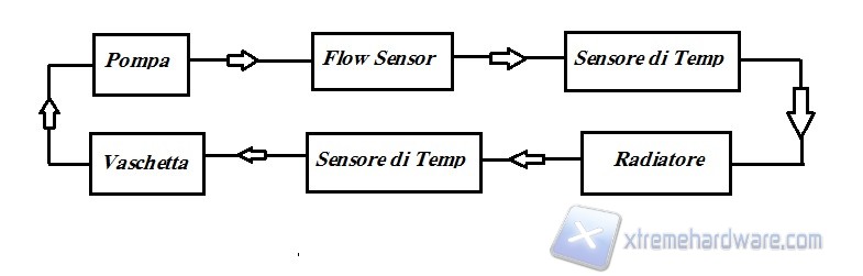 Da notare, alle frequenze di default ed in overclock, gli alti valori computazionali (GFlops) raggiunti da Ivy Bridge nel test di Linx. Altro fattore da mettere in evidenza è come il radiatore Phobya Xtreme 400 sia in grado di smaltire il calore in eccesso generato dal processore in regime di overclock. Bisogna comunque tenere conto che l’impedimento a raggiungere frequenze più alte è dovuto alla scarsa qualità della pasta sottostante l’IHS, tesi avvalorata da test disponibili in rete. Per valutare la restrittività del Phobya Xtreme 400 abbiamo misurato la portata in un loop così composto: