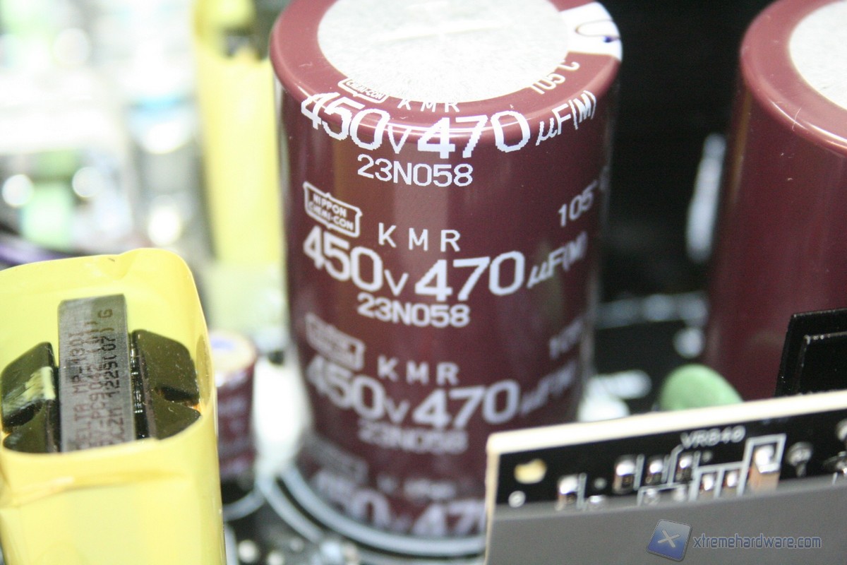 Nel primario sono presenti due condensatori giapponesi Nippon Chemi-Con da 450V e 470 μF cadauno, certificati a 105 °C.