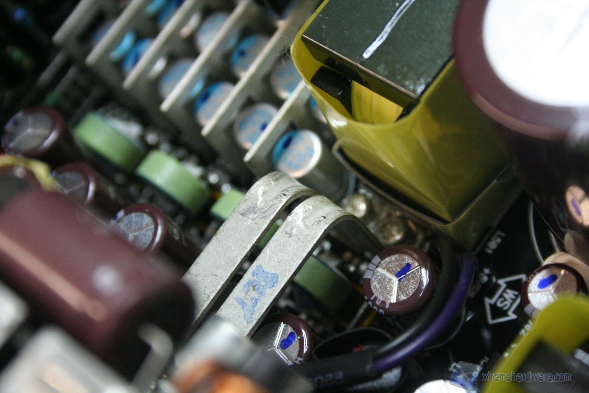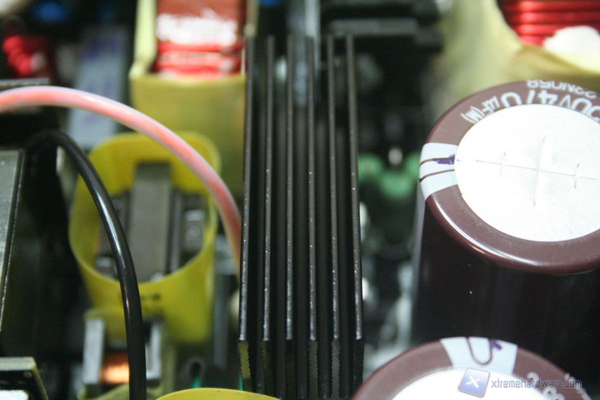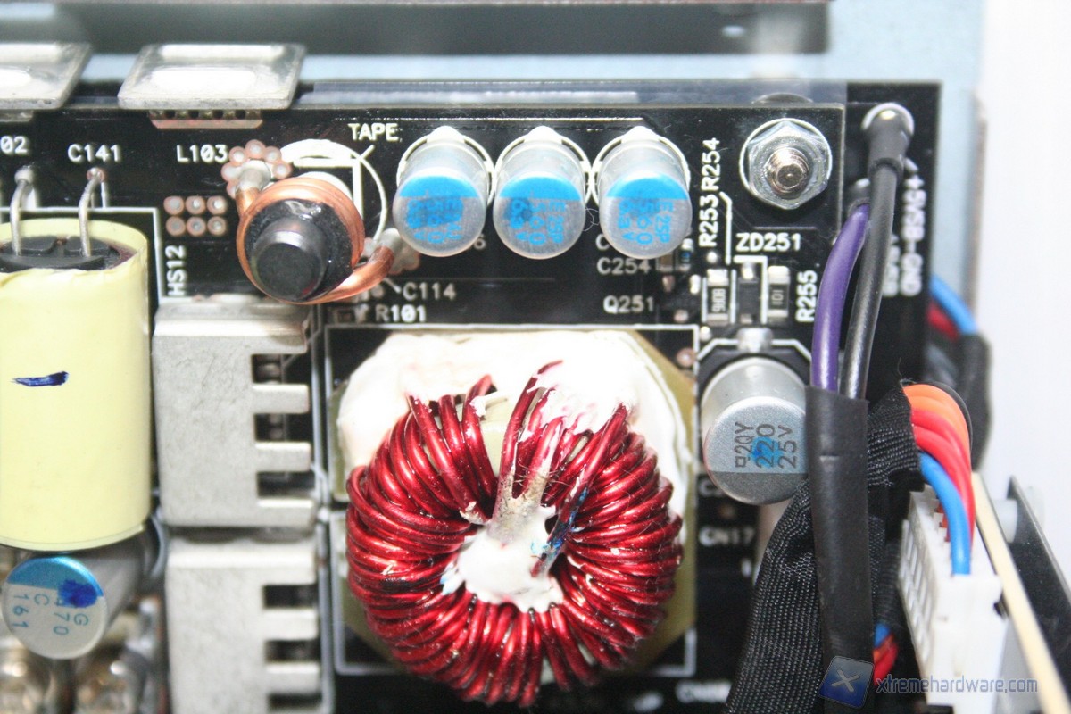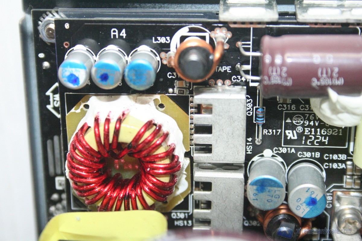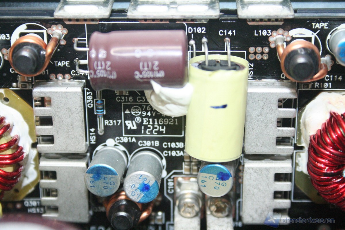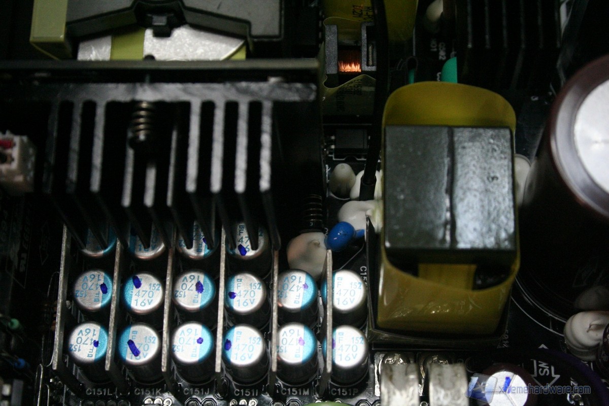 NOTA GENERICA: quelli del circuito primario agiscono come buffer e sono molto importanti perché la loro presenza aiuta a proteggere il nostro alimentatore ed il computer stesso da pericolosi sbalzi di tensione e generalmente vengono collegati in parallelo al fine di sommare le singole capacità o, alternativamente, per modelli meno potenti. La tipologia dei condensatori utilizzata è quindi molto importante perché la vita di queste componenti si dimezza in base all’aumento della temperatura di ogni 10 gradi Celsius, sotto un normale carico di lavoro; questo significa che utilizzando modelli di condensatori capaci di gestire, senza il minimo problema anche 105 gradi Celsius, la durata della loro vita potrebbe essere addirittura pari al doppio rispetto a modelli standard da 85 gradi Celsius! Questo fattore è uno dei più sponsorizzati nel campo degli SMPS, non a caso ci si vanta della presenza di condensatori giapponesi nella propria unità, capaci appunto di sopportare temperature maggiori e quindi prolungare la vita stessa dell’unità.