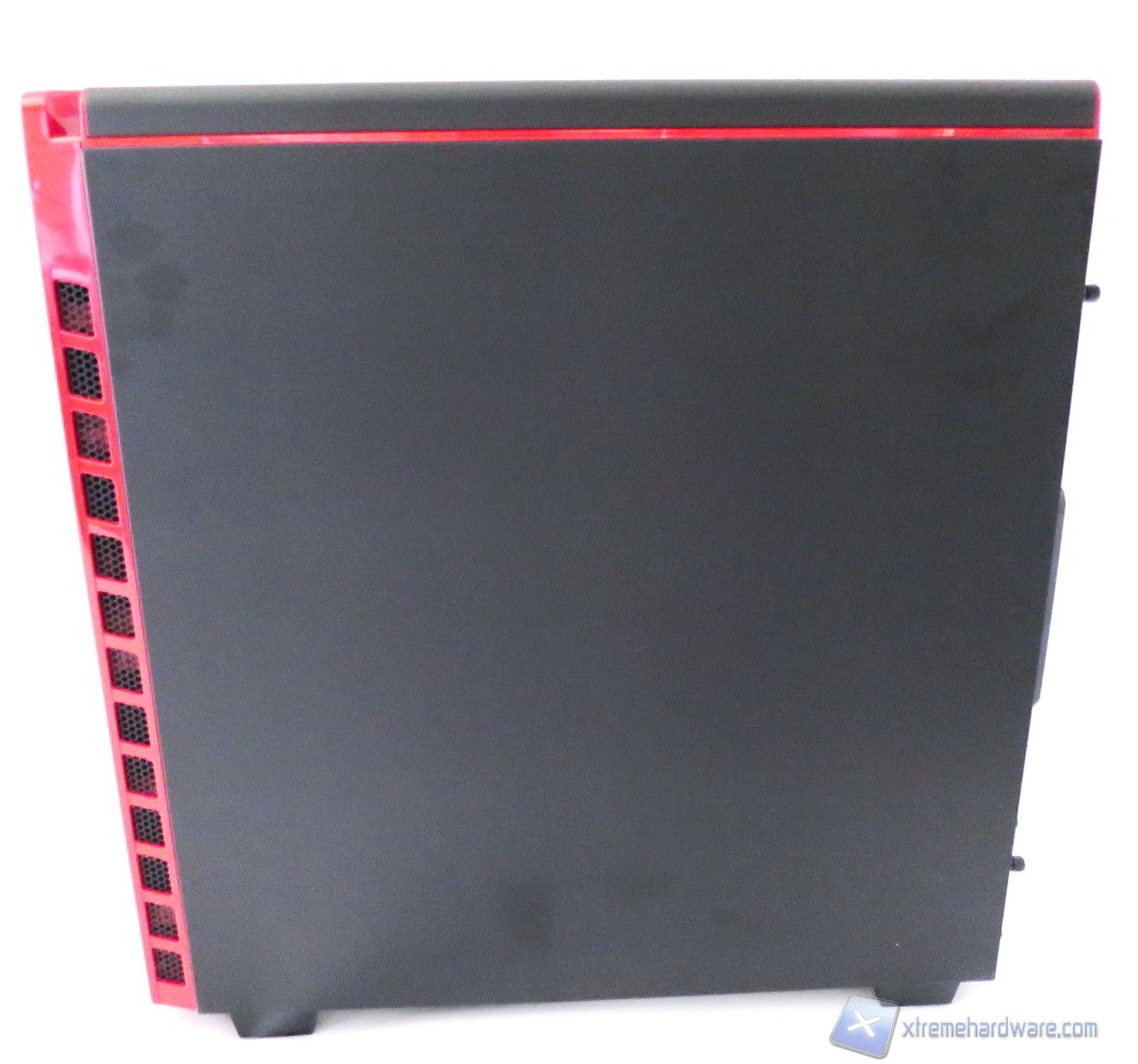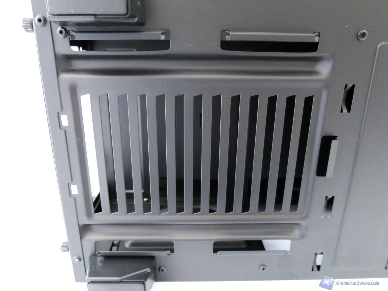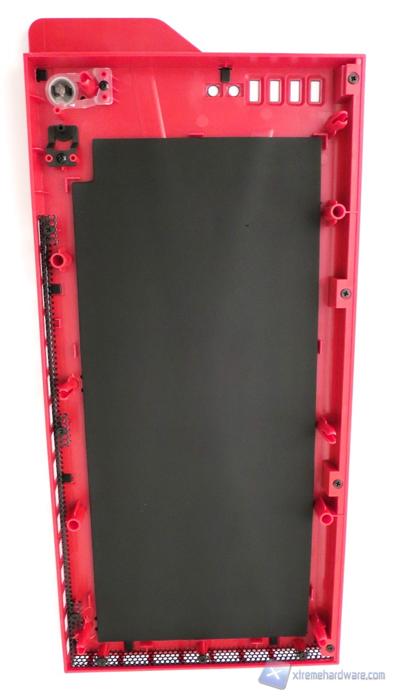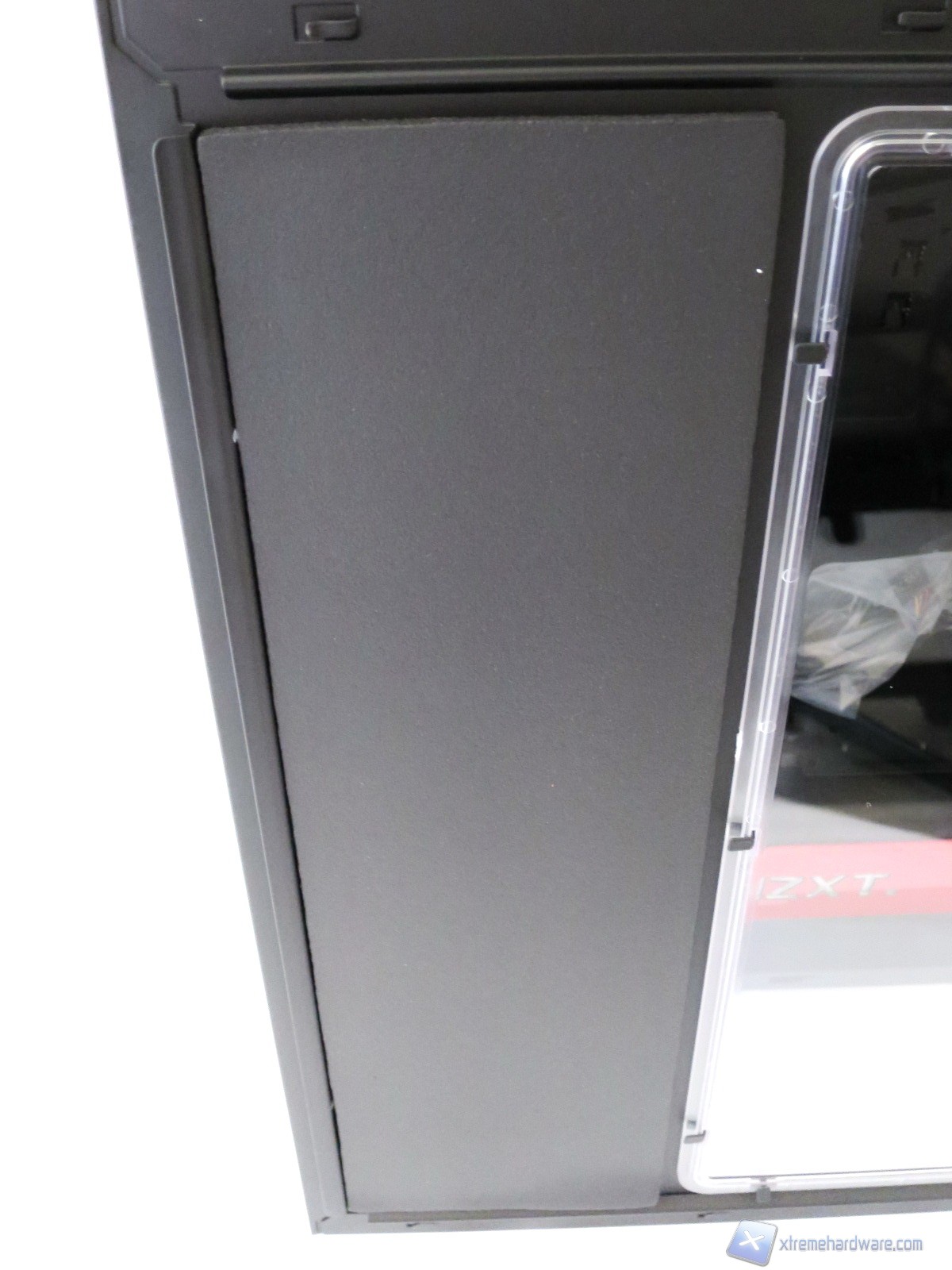 La tipologia delle paratie è classica, hanno un buon spessore, sono di ottima qualità e si chiudono molto facilmente (senza le classiche slitte forate ma con il semplice inserimento). La verniciatura è standard, sebbene sia presente il fenomeno del fingerprinting anche a causa della leggera superfice soft touch presente su di esse. Inoltre, notiamo il generoso pannello fonoassorbente installato nella parte interna della paratia di sinistra a ridurre il rumore generato dai componenti interni mentre abbiamo un’ampia paratia finestrata in plexyglass in quella di destra dove troviamo anche qui, a fianco della finestra, un ulteriore pannello fonoassorbente.