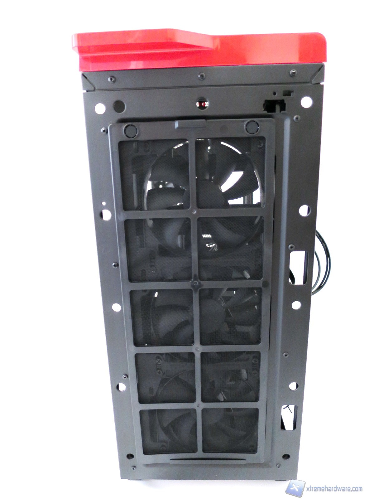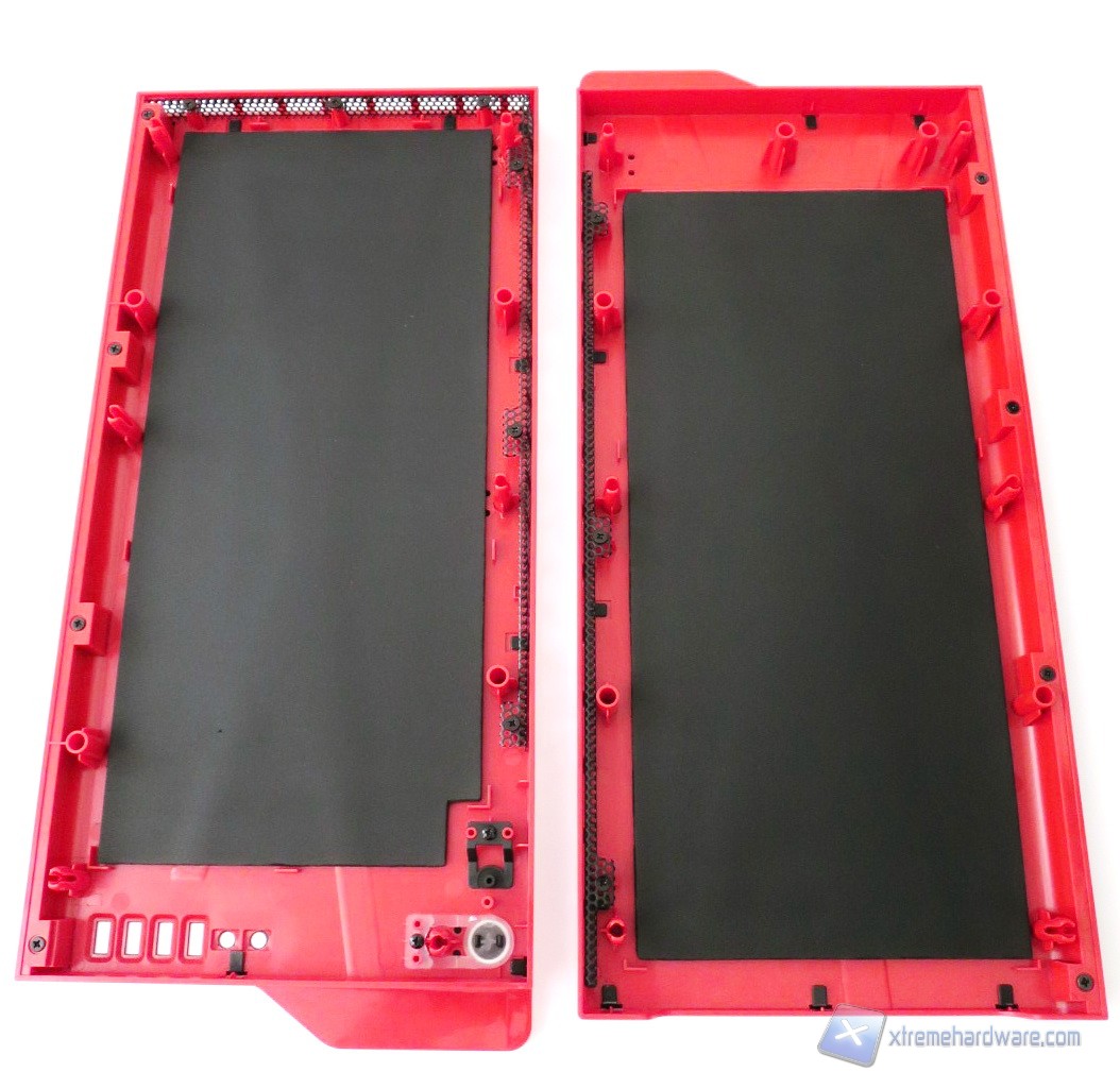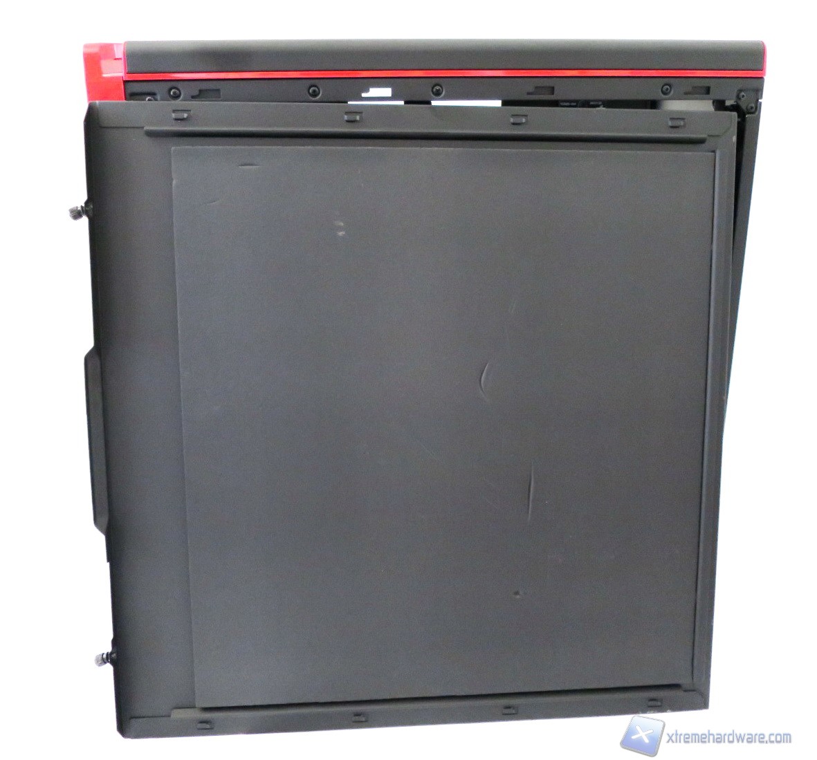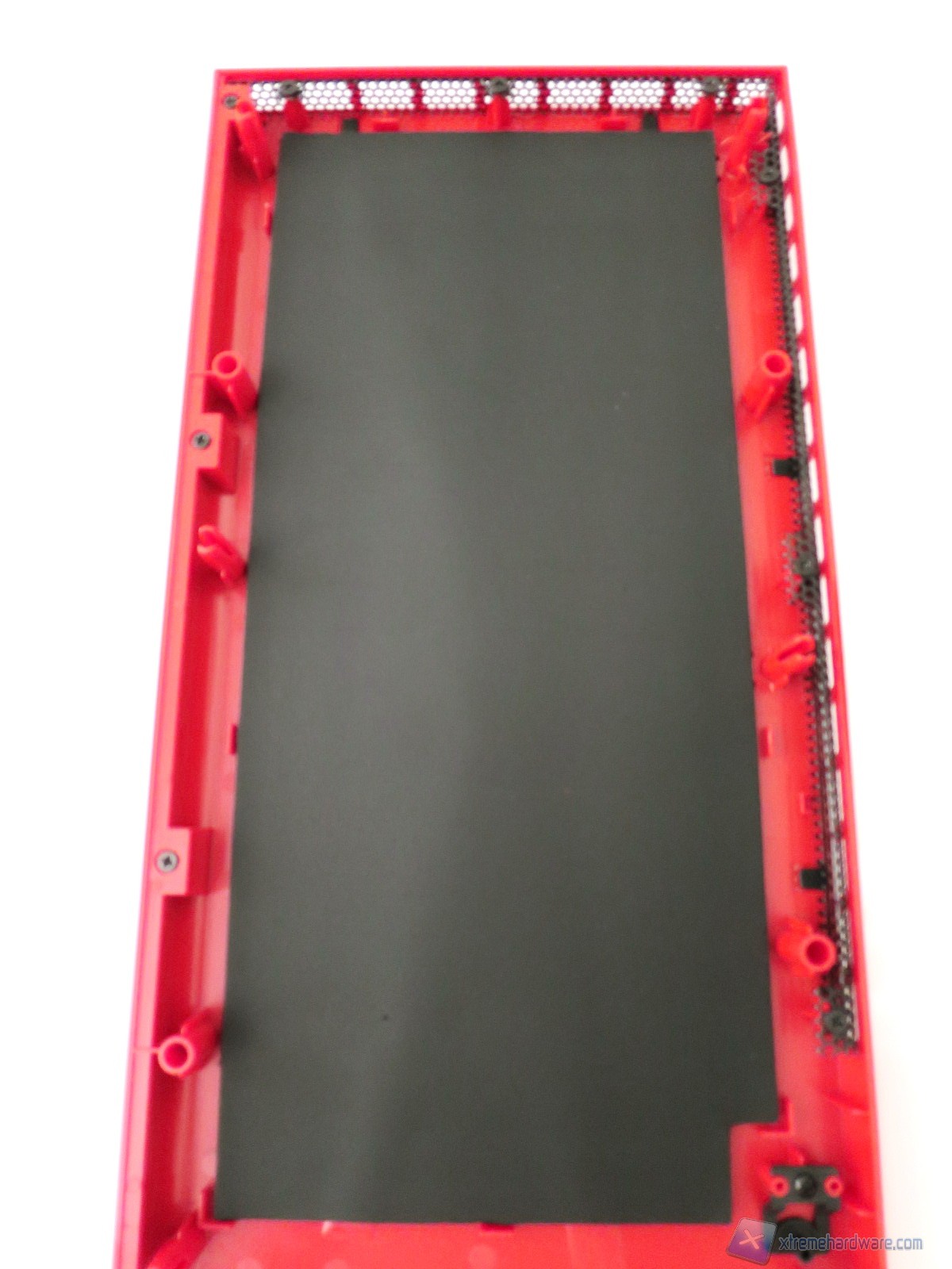 La tipologia delle paratie è classica, hanno un buon spessore, sono di ottima qualità e si chiudono molto facilmente (senza le classiche slitte forate ma con il semplice inserimento). La verniciatura è standard, sebbene sia presente il fenomeno del fingerprinting anche a causa della leggera superfice soft touch presente su di esse. Inoltre, notiamo il generoso pannello fonoassorbente installato nella parte interna della paratia di sinistra a ridurre il rumore generato dai componenti interni mentre abbiamo un’ampia paratia finestrata in plexyglass in quella di destra dove troviamo anche qui, a fianco della finestra, un ulteriore pannello fonoassorbente.