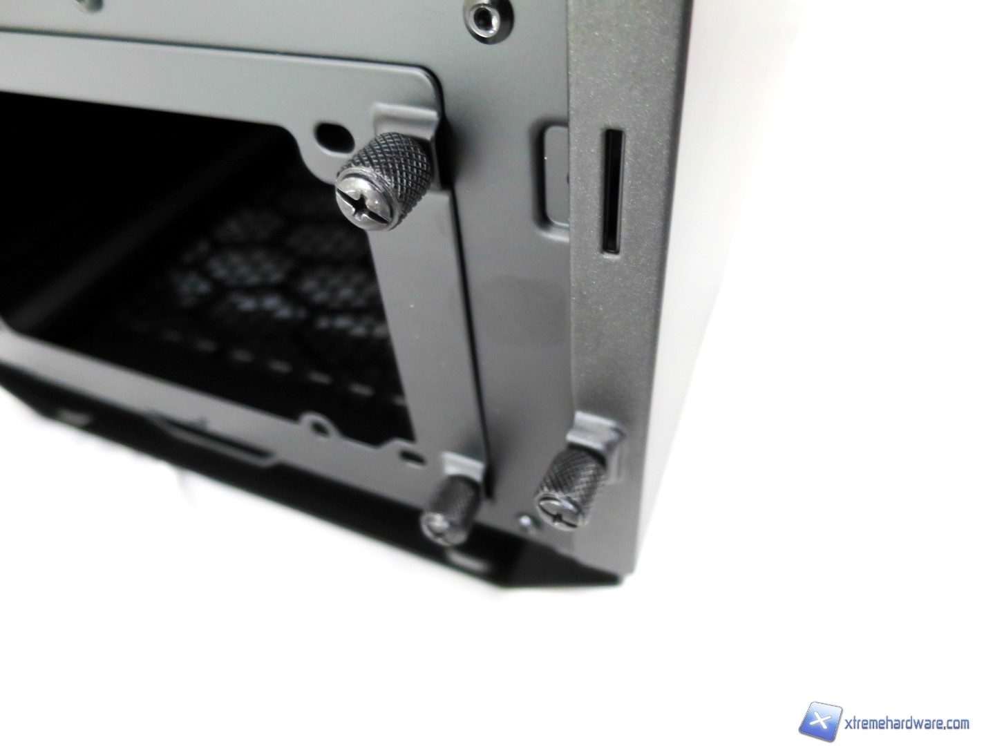 Dettaglio delle viti Tool-less impiegate per i pannelli laterali e per il supporto dell’alimentatore.