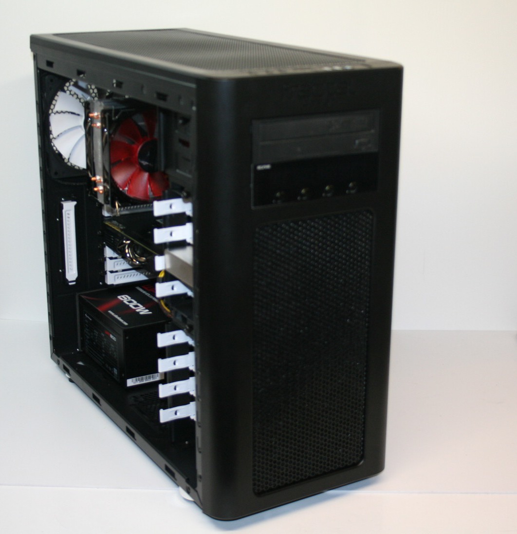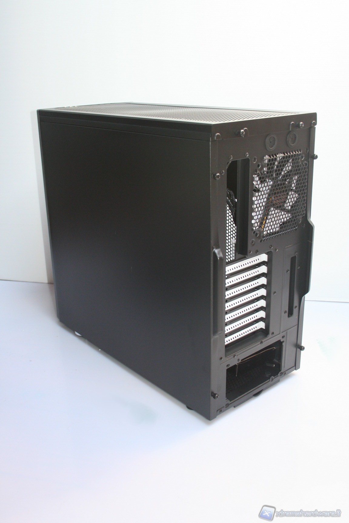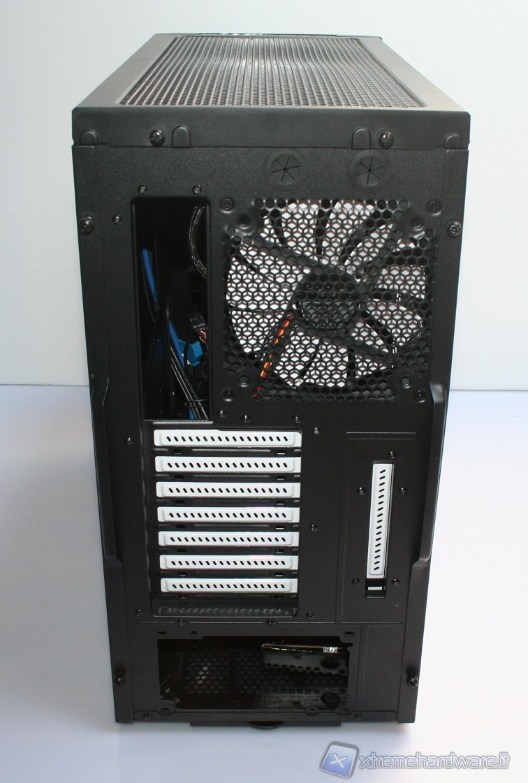 Siamo dinanzi a tre ventole da 140mm con un selettore di velocità nello slot PCI, fornito in dotazione. Sono buone ventole, generalmente silenziose al minimo dei giri, ma capaci di far girare un buon quantitativo di CFM se al massimo; in quest’ultima configurazione saranno chiaramente percettibili ma non rumorose. La scelta di installare due delle tre ventole in dotazione in espulsione non ci è sembrata molto efficiente. Lo sbilanciamento tra immissione ed espulsione poterà al fenomeno della pressione negativa all’interno del case, il che implicherà che entrerà dell’aria dalle fessure non filtrate, in particolar modo dalla griglia sulla paratia laterale accanto alla scheda video. Come vedremo dai test la configurazione di default non è molto efficace, consigliamo vivamente di installare la ventola presente sul top come ulteriore ventola in immissione nella paratia frontale.
