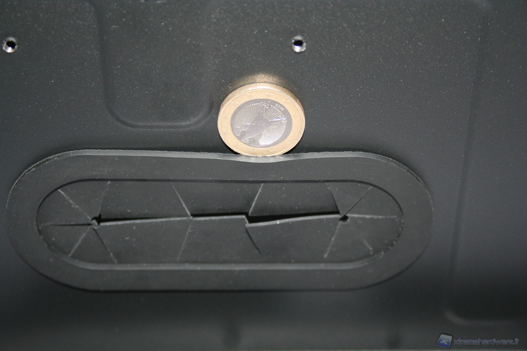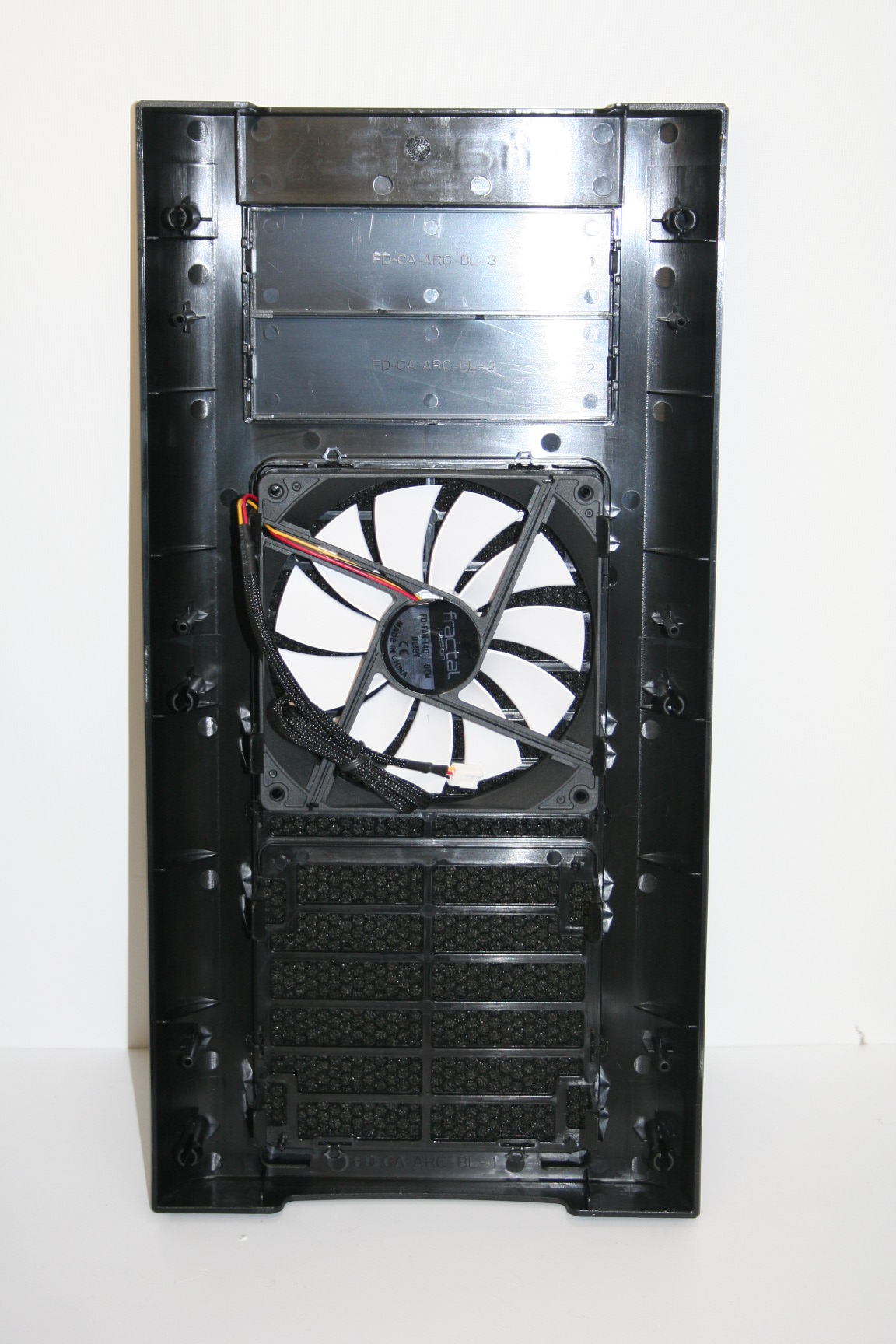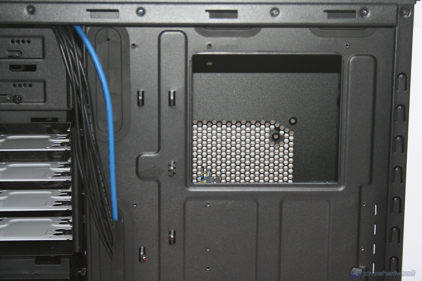 Nella parte inferiore dell’Arc è presente un filtro removibile dal retro del cabinet. L’altezza da terra è piuttosto bassa: ci potrebbero essere problemi qualora il cabinet fosse posizionato su di un tappeto a trama fitta. L’organizzazione del flusso d’aria dell’alimentatore non permetterà l’immissione di aria calda all’interno del cabinet, quindi isolerà termicamente l’alimentatore dal resto del case. E’ presente un alloggio per una ventola da 120 o 140mm nella paratia inferiore dell’Arc; la lunghezza massima dell’alimentatore nel caso in cui fosse installata è di 170 mm, contro i 270 in caso di ventola assente.