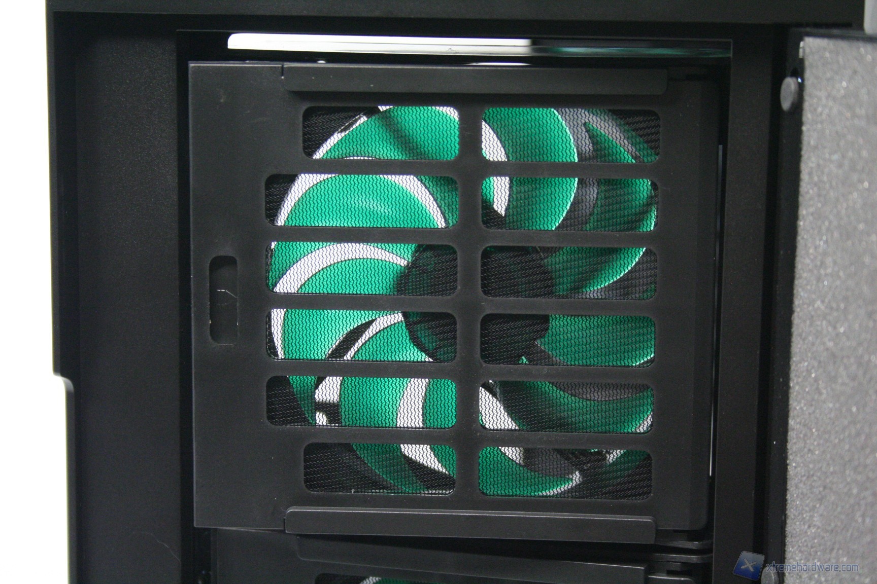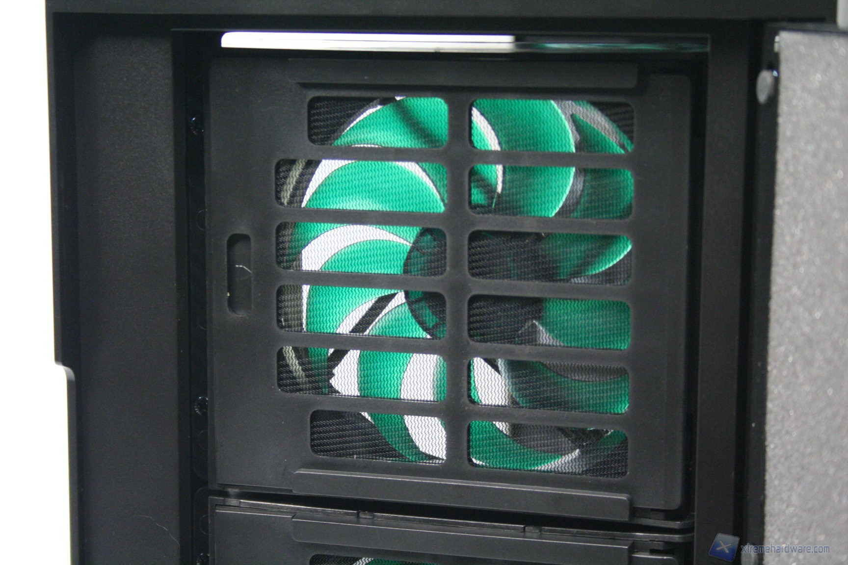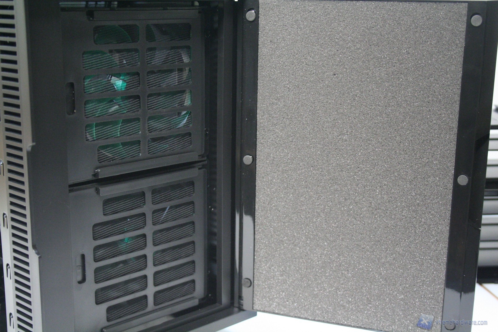 Come si evince dalle fotografie, le due ventole da 120mm sono posizionate direttamente sotto il filtro ed è possibile controllarne gli RPM grazie ai fan controller posti nella parte frontale in alto. Qui vi mostriamo come rimuovere il filtro, per accedere alle ventole: