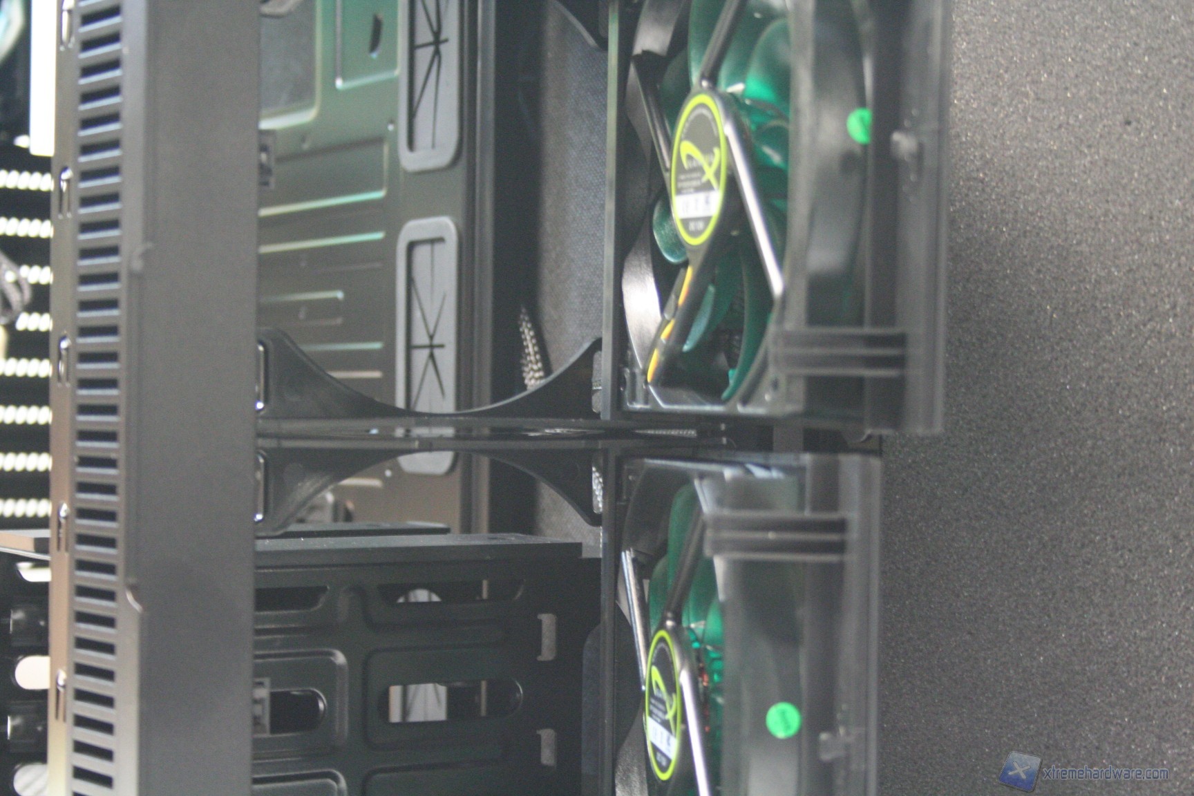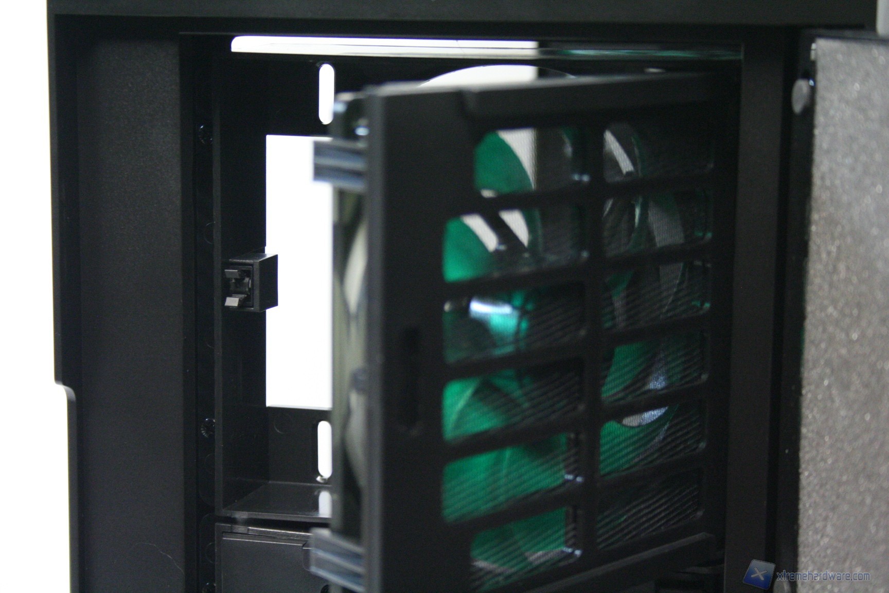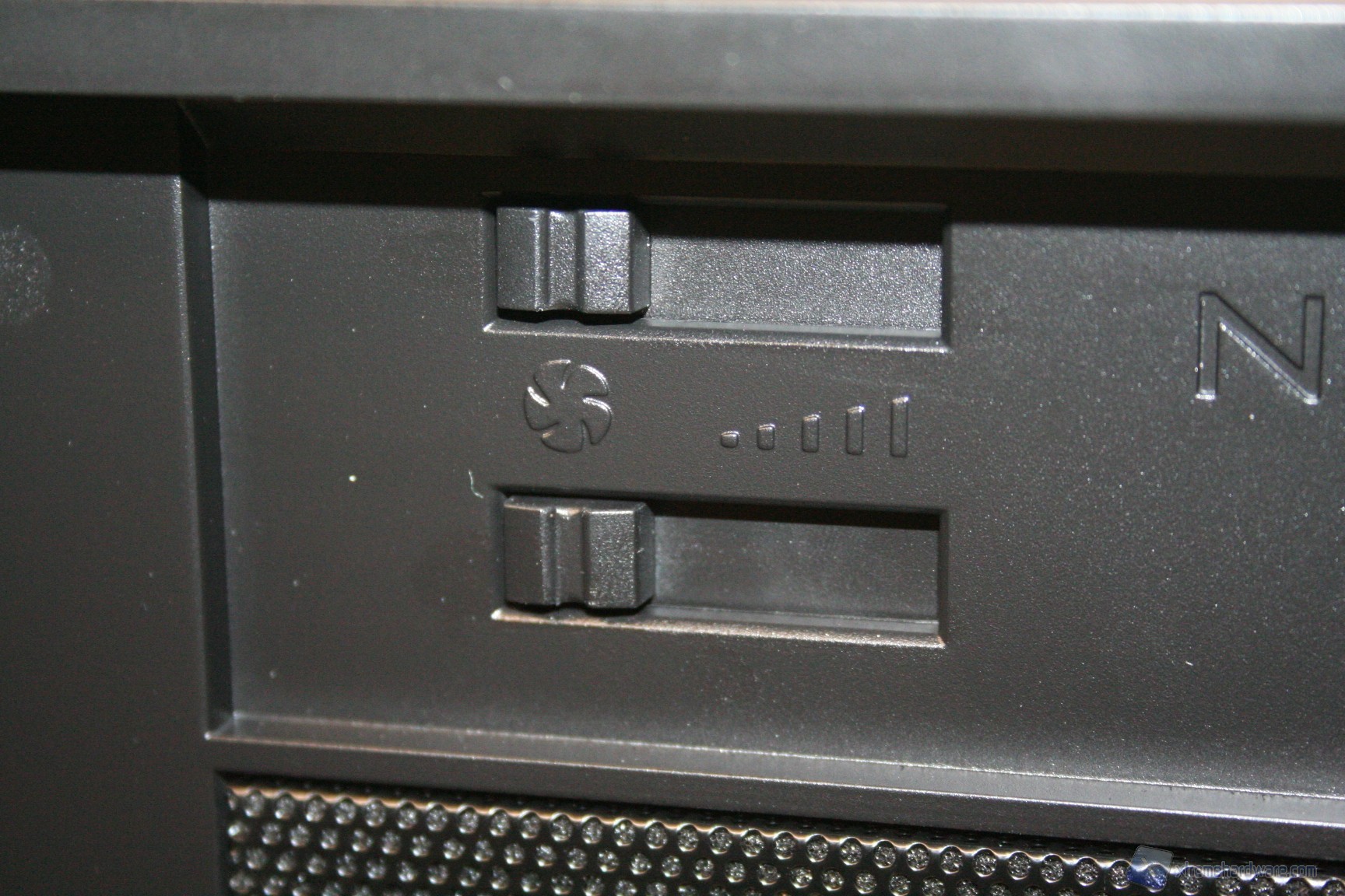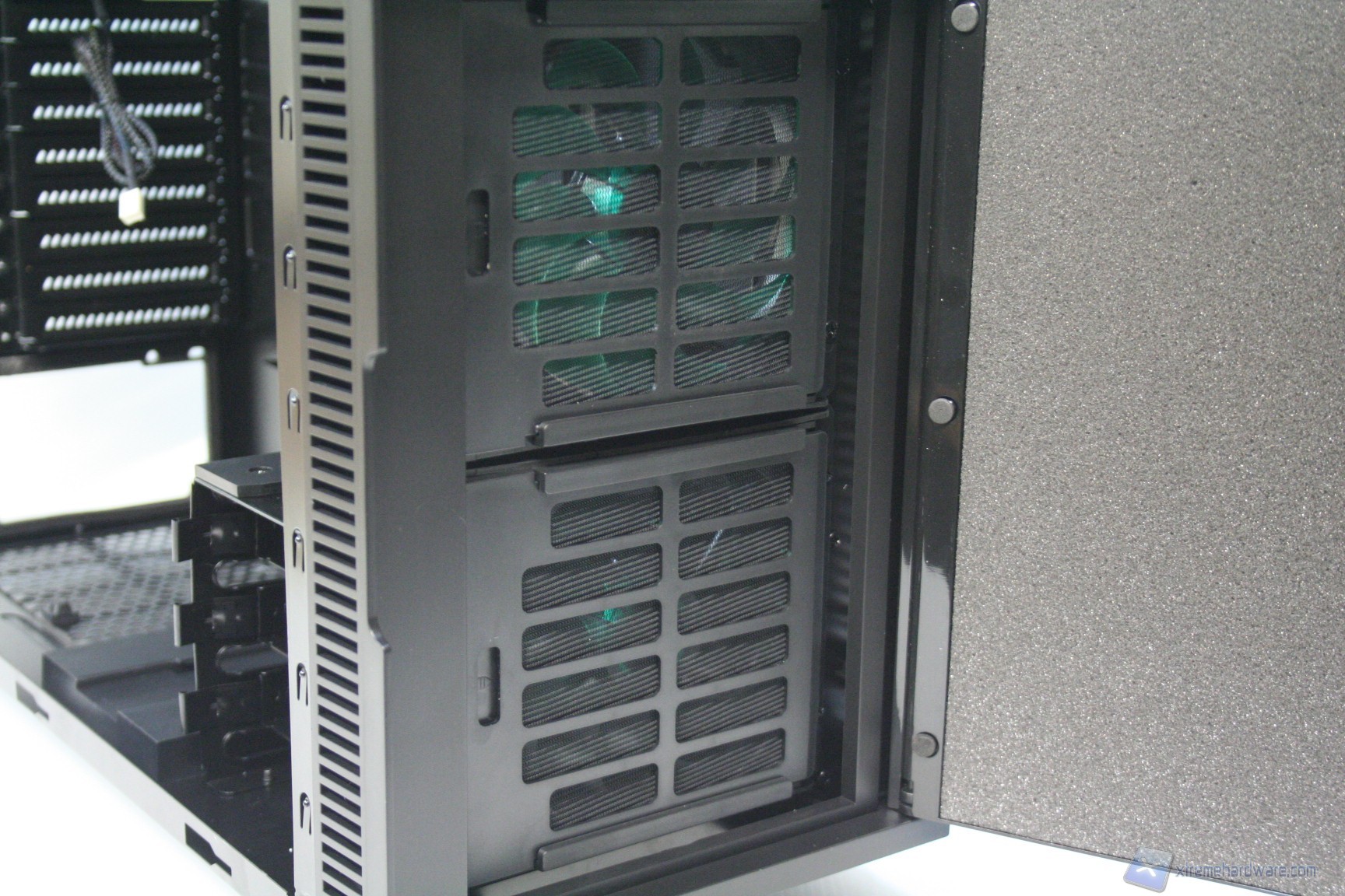 Come si evince dalle fotografie, le due ventole da 120mm sono posizionate direttamente sotto il filtro ed è possibile controllarne gli RPM grazie ai fan controller posti nella parte frontale in alto. Qui vi mostriamo come rimuovere il filtro, per accedere alle ventole: