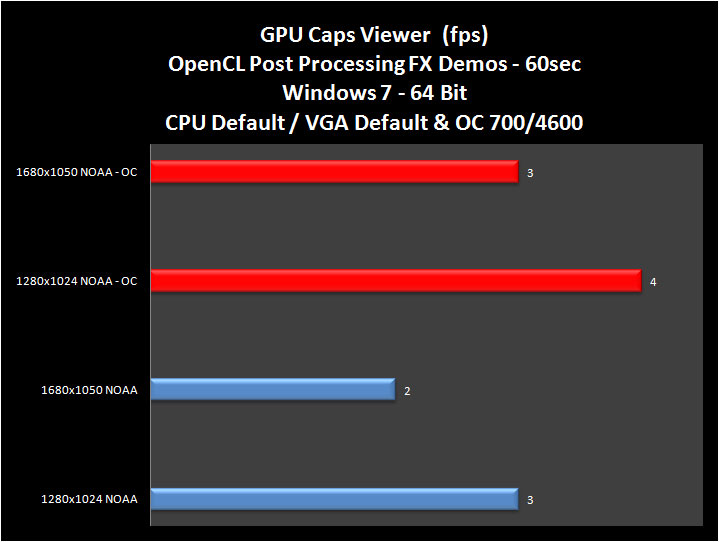 Noi abbiamo testato il demo OpenCL Post Processing FX a due risoluzioni, gli fps sono stati misurati mediante l’utilizzo dell’ultima versione di Fraps.