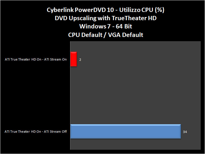 La differenza in termini qualitativi è lampante, ma la cosa che stupisce di più è l’utilizzo del processore centrale. Se la tecnologia ATI Stream è attiva notiamo che non viene praticamente chiamato in causa, infatti tutto il carico di lavoro è egregiamente svolto dalla sola scheda grafica, situazione opposta si verifica qualora la funzione di accelerazione viene disattivata.
