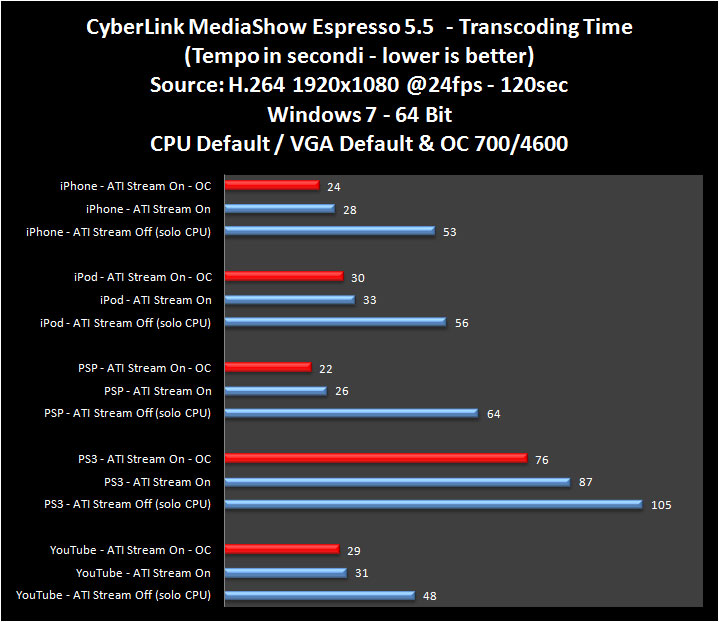 Nella nostra prova andremo a testare l’effettivo guadagno che l’ATI Stream permette di ottenere sui tempi di conversione e il conseguente alleggerimento del carico di lavoro sulla cpu di sistema.
